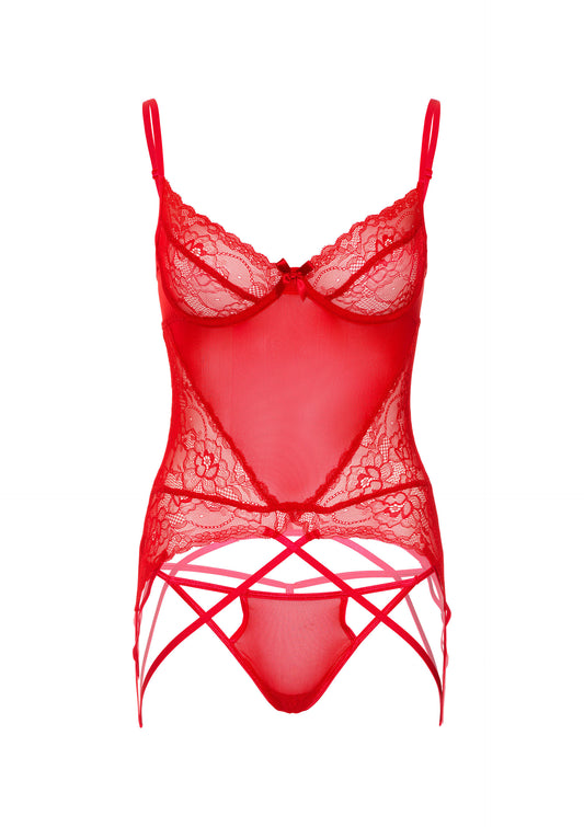 Corsetto con perizoma e reggicalze Lace and Mesh Cami Set
