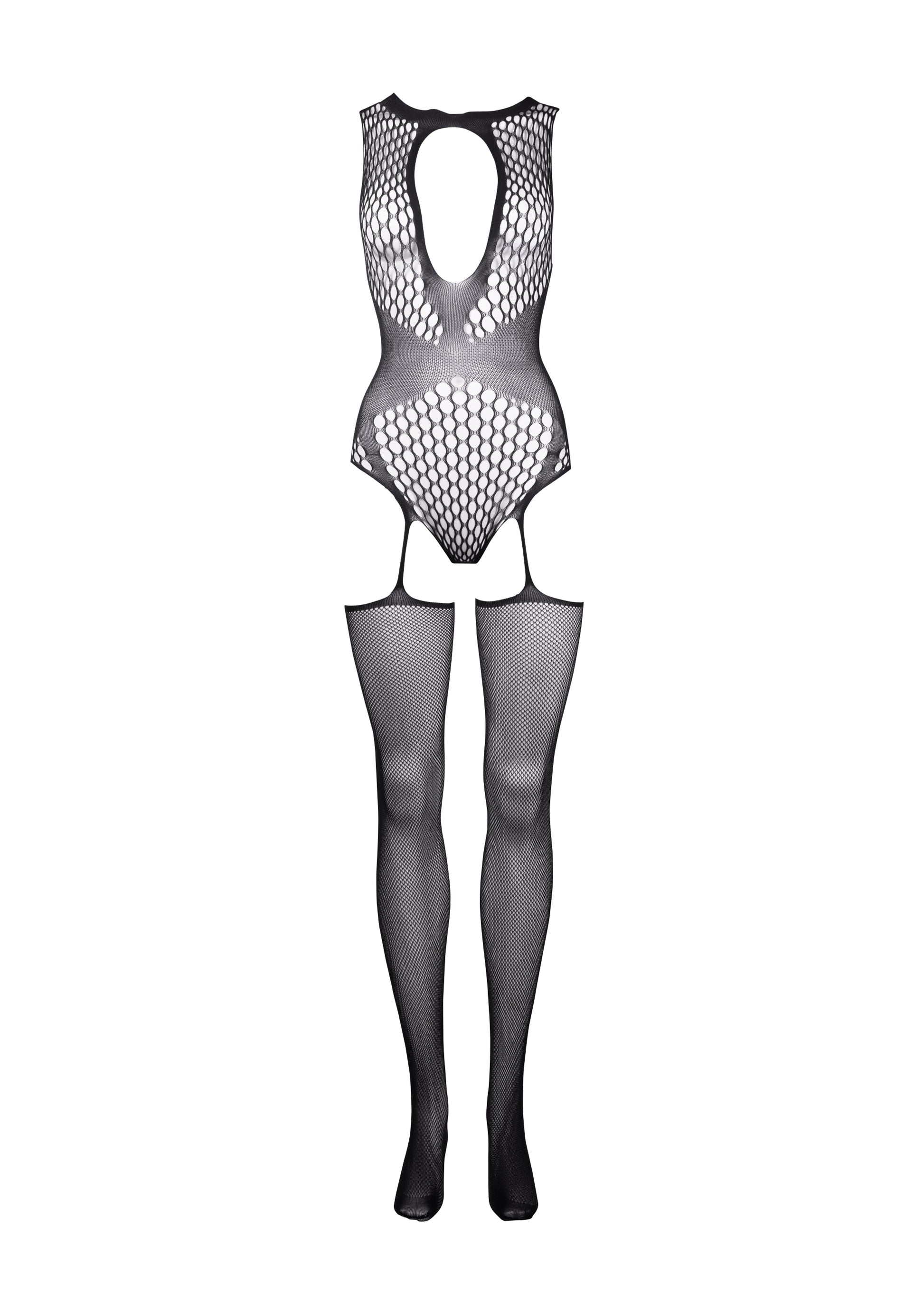 Bodystocking di sospensione in una splendida combinazione di due reti, con un accento sul buco della serratura per un aspetto più sexy. Il morbido tessuto super elasticizzato si adatta alle taglie dalla S alla 5XL.